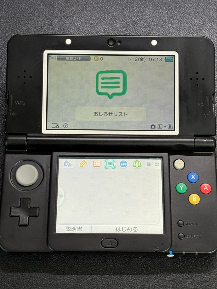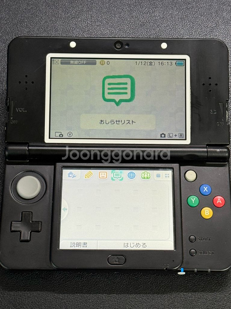 뉴 닌텐도 3ds 블랙 일본판 본체 정펌 단품 과거에 선물 받아 실기로 사용하다가 새로운 제품을 구하여 판매합니다 짜집기 된 제품으로 확인되고, 3d 조절 스위치와 상하판 플레이트가 없습니다. 내부 전선 연결 문제인지 상단 화면 밝기가 힌지 각도에 따라 달라집니다. 어떻게 건들면 상하단 밝기가 동일해지나, 어떻게 건들면 상단 화면은 밝기 2~3, 하단 화면은 밝기 5인 느낌으로 이해해주시면 될 거 같습니다 첨부해둔 영상 확인 부탁드립니다. 버튼 반응 좋고 힌지 양호, 그 외에 카메라, 칩 인식 등 정상 작동합니다. 중고 상품이며 하자가 있는 제품이오니 예민하신 분들께서는 구매를 피해주시고, 구매 전 충분히 고민 후 구매 부탁드립니다. 반값 택배 이용시 + 2,000 택배 거래시 + 3,000 직거래는 세븐일레븐 당인동점 앞입니다