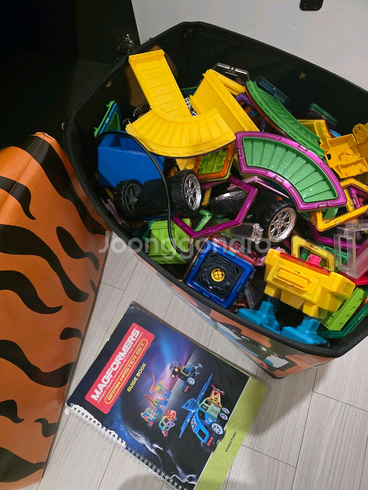 맥포머스 자석 블록 세트 판매합니다 갯수는 너무많아 다 세보지못하구요.. 그냥 엄청많고 부품다양하게 다있습니다. 기차, 바퀴,로봇 다양하게 다 만들수있습니다. 부족한부품은 없었습니다 무게나 크기가 있어서 차에 실어가셔야합니다. 가이드북이 포함되어 있어 다양한 조립 예시를 참고할 수 있습니다 (사용감있음) 귀여운 동물 그림이 그려진 보관함에 담겨 있어 정리하기도 편리해요 직거래 무거워요 수원스타필드