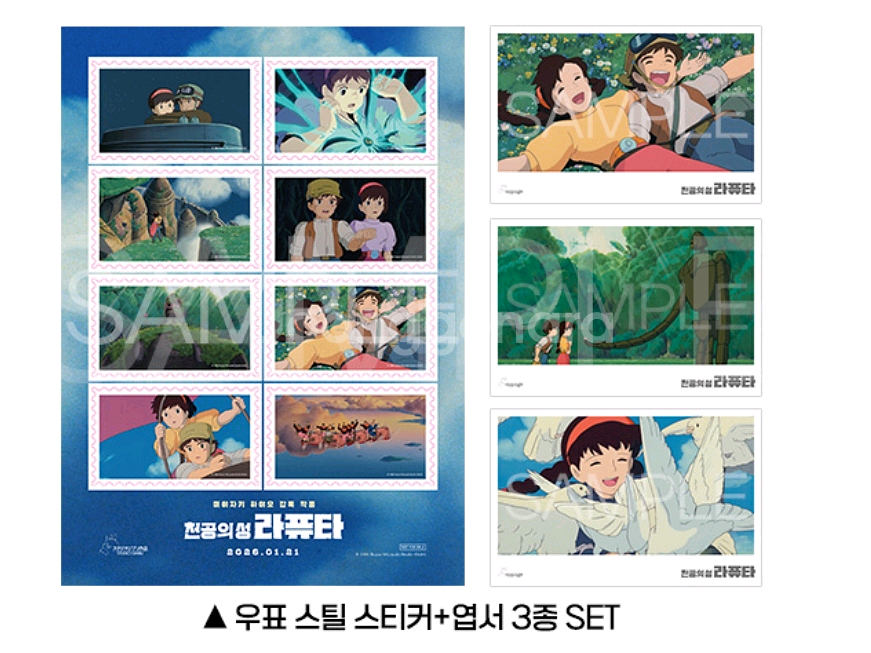 천공의성라퓨타 엽서3종 우표 스틸스티커 세트 4주차 굿즈 특전