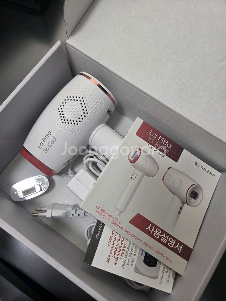 라피타 제모기 새제품이에요! 박스와 구성품 모두 있습니다. 함께 판매중인 아이스쿨러는 없어요.