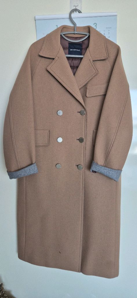 빈폴 롱코트에요 안쪽에 구스로 층전되있고 울코트에요 사이즈는 66인데 여유핏이여서 77이신분까지 맞아요 컬러예쁘고 몇번안입은 옷이라서 이염이나 하자없이 깨끗합니다 오픈해서 입어도 예뻐요 저렴히 데려가세요