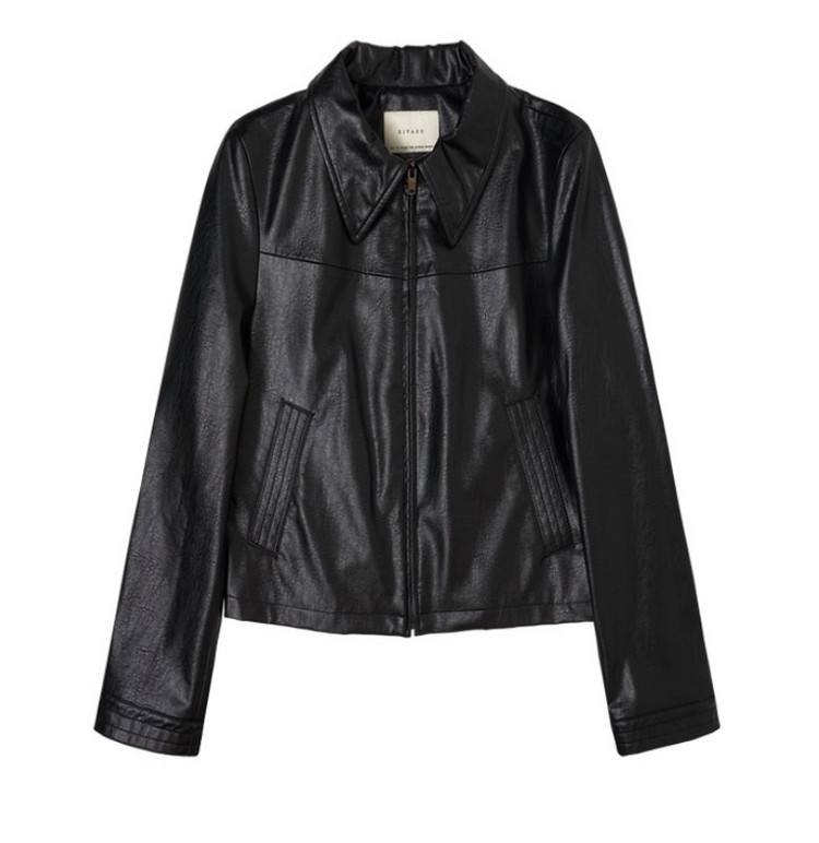 시야쥬 SIYAZU 크롭 레더 자켓 블랙 SIYAZU Fake Leather Crop JK_Black 24년 가을 구매 5회 착용 / 상태 좋음 은은한 광택감이 도는 부드러운 페이크 레더 소재의 크롭 자켓입니다. 군더더기 없는 디자인에 카라 디테일과 절개 라인이 더해져 깔끔하면서도 세련된 무드를 연출합니다. 적당한 두께감으로 간절기 시즌 활용도 높고, 하이웨이스트 팬츠나 슬랙스, 데님과 매칭이 좋습니다. • 정가 137,000원 • 컬러 Black • 사이즈 F 실측 (cm) 총장 49 어깨 41 가슴단면 52 소매길이 58.5 소매단면 17.5 겉감/안감 POLYESTER 100% 눈에 띄는 오염, 하자 없이 전반적으로 컨디션 좋습니다. * 배송비 무료입니다 * 여러 상품 구매시 할인됩니다 * 더 보고싶으신 부분 사진 요청하시면 바로 찍어 보내드립니다 * 로젠택배로 안전하고 빠르게 보내드립니다 * 구매자분께서도 기분 좋은 거래가 되었으면 좋겠습니다