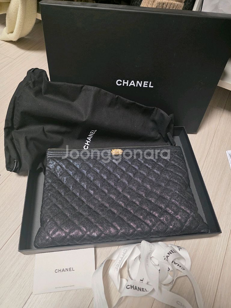 샤넬 보이 클러치 라지 입니다 박스, 더스트백, 포함되어 있습니다 28번대 새거 구매해서사용했습니다. 외부 긁힘자국없습니다 내부 화장품자국없이 깔끔한편입니다. 정품 수원스타필드