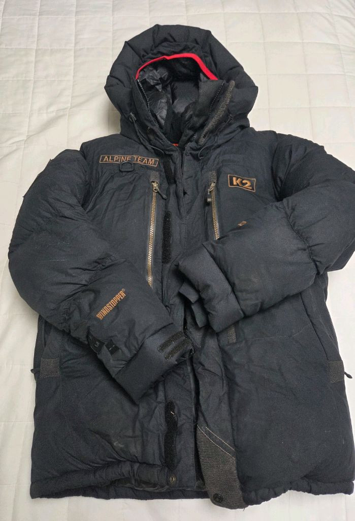 모델명: K2 코볼드 (KOBOLD) 사이즈 95 주요 특징: 소재: 고어 윈드스토퍼(WINDSTOPPER) 원단을 사용하여 방풍 및 투습 기능이 뛰어납니다. 충전재: 800 필파워 이상의 고급 구스다운을 사용하여 보온성이 매우 높습니다. 디자인 포인트: * 오른쪽 어깨 부분의 'ALPINE TEAM' 로고 박스 패치. 왼쪽 가슴의 'K2' 로고 박스 패치. 후드 안쪽의 강렬한 레드 컬러 배색 (코볼드 초기 모델의 시그니처 디자인입니다). 소매 끝부분의 'WINDSTOPPER' 자수. 사용감 있습니다