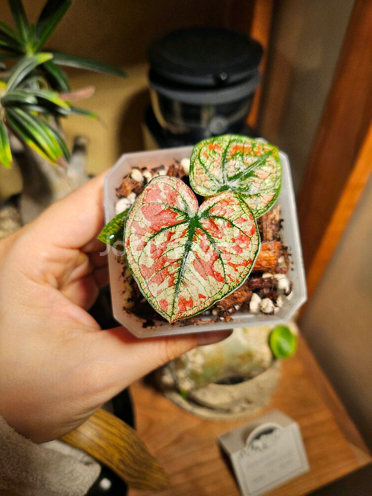 라디움 크리스마스/레드탱고 분양합니다 무늬 좋구요 보시다시피 빵떡한 잎이 귀여워요 나중에는 빨갛고 화려한 성체 잎으로 커집니다 이쁜 신엽 나오고 있구요 사진에서 보시는바와같이 뿌리도 잘 뻗어 나오고 있어요 구매 원하시는 분들 언제든지 연락 주세요 많은 관삼 부탁드립니다