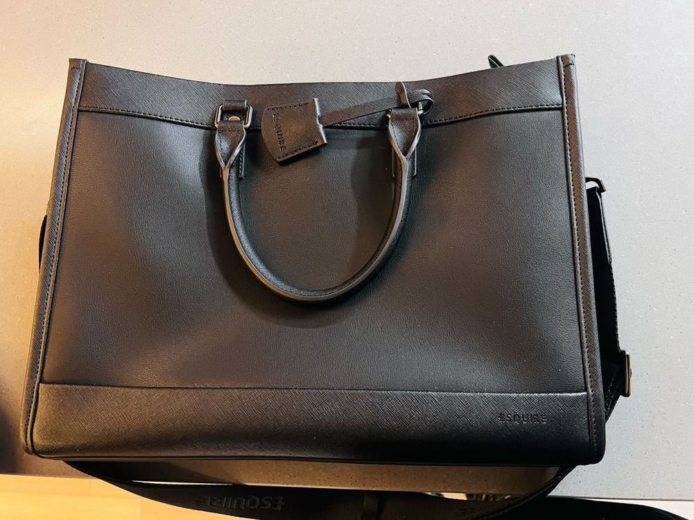 고급 사피아노 가죽으로 제작된 에스콰이어 정품 서류가방이에요. 내부 수납공간과 지퍼 포켓이 잘 구성되어 있고, 사용 전혀 없는 새상품입니다. 비즈니스용이나 학업용으로 활용하기 좋은 실용적인 가방이에요.
