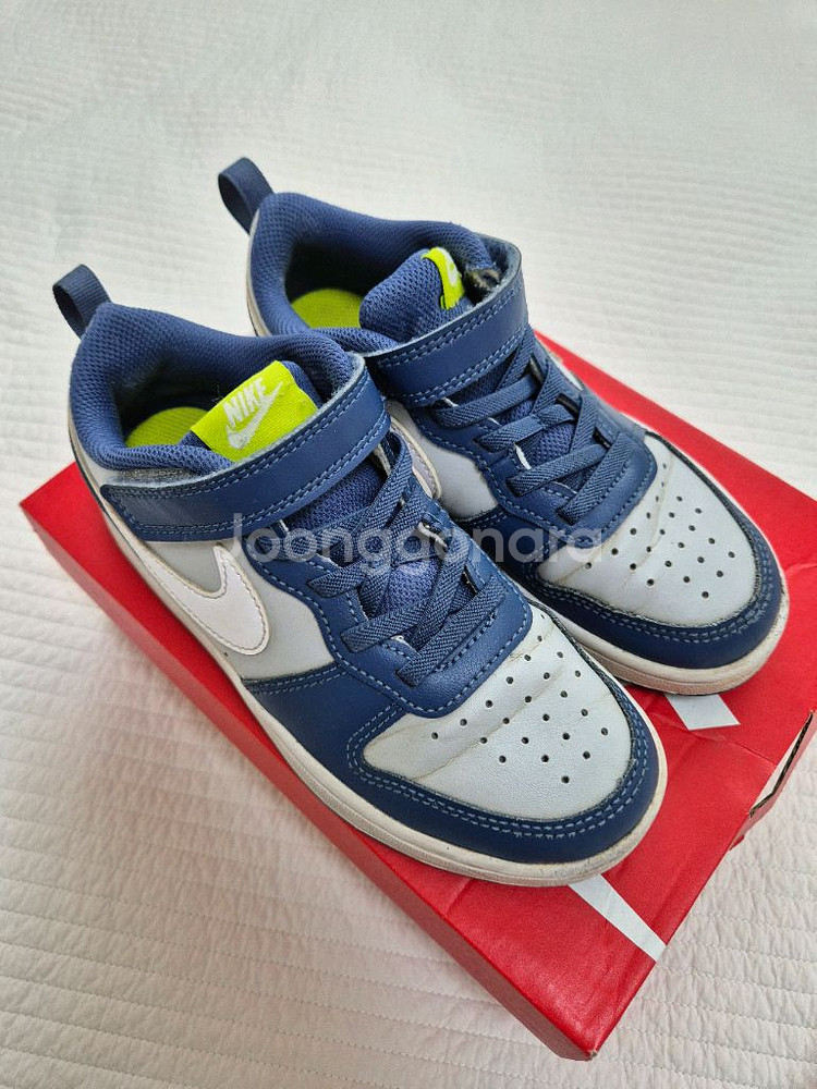 나이키 키즈 코트 버로우 1Y 사이즈. 200cm사이즈. (약간 넉넉하게 나온사이즈) 아주 깨끗하게는 아니지만 손세탁 해두고, 안쪽 신었던부분은 밑창 깨끗하게 세탁 소독해 두었어요. 찍찍이, 고무밴딩끈으로 편하고, 색깔조합이 예뻐요. 마지막사진 저희아이 실착 사진 참고요. 실제발 사이즈 200cm정도 일때 신었어요. 중고인점 착용감 주름등은 사진잘 확인해주시고, 사이즈도 잘 확인해주신후 구매문의 주세요🙏