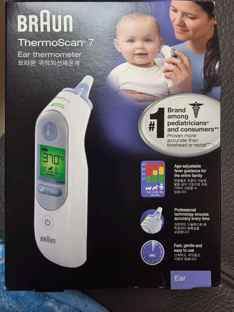 브라운귀 체온계 irt6520 새 제품이에요. 박스 포장 상태 그대로 미개봉 상품입니다. 아기부터 성인까지 사용 가능한 정확한 체온 측정기예요.