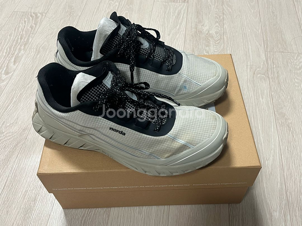 노다 002 신더 265 사이즈 판매합니다 세련되고 워낙 튼튼한 신발이어서 밑창이나 외부에 데미지 거의 없는데 왼발 앞쪽에 오염 조금 있고 뒷축 천 부분이 조금 터졌어요 수선이 가능할 거 같은데 감안해서 낮은 가격에 판매합니다 기능적인부분이나 겉으로는 신는데 이상 전혀없어요 정가 39만원 정도에 구매했던 걸로 기억해요 박스 택 더스트백 모두 있는 풀 구성입니다 부자재 하나 하나 고급 기능성소재로 만들어진 트레일 러닝화입니다