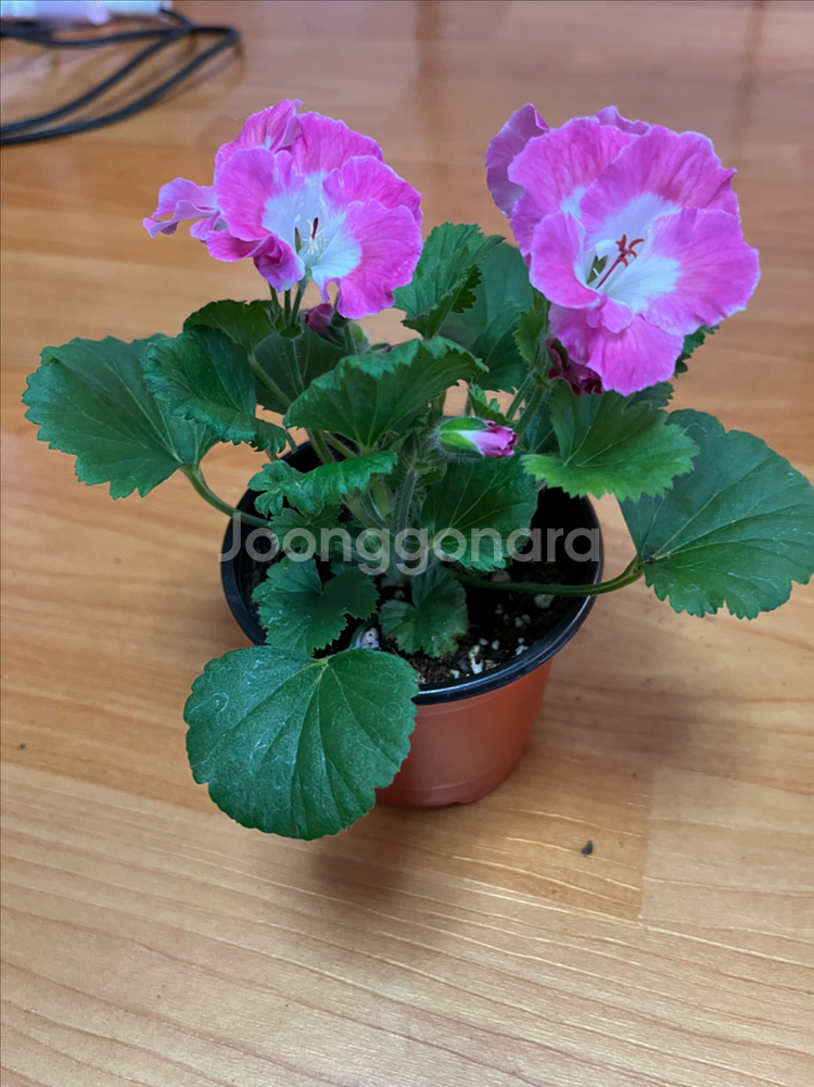 아름다운 핑크색 겹꽃이 피는 제라늄이에요. 잎이 건강하고 꽃도 예쁘게 피어있어서 키우기 좋을 것 같아요. 실내에서 키우기 쉬운 식물입니다.