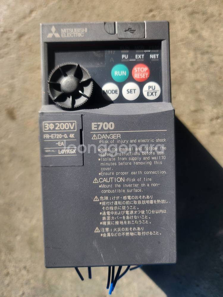 미쓰비시 인버터 FR-E720-0.4K-EA 입력(Input): 3상 AC 200~240V, 50/60Hz 출력(Output): 3상 최대 AC 240V, 정격 전류 3.0A, 0.4kW(반마력) 용량 주파수 범위: 0.2 ~ 400Hz 2. 제품 설명 이 제품은 소형 모델 중 최고 수준의 구동 성능을 자랑하는 고성능 범용 인버터입니다. 고정밀 제어: 어드밴스트 자속 벡터 제어를 탑재하여 고정밀 산업 기기에 적합하며, 저속에서도 높은 토크를 실현합니다. 컴팩트한 설계: 공간 절약형 디자인으로 좁은 장소에도 설치가 용이합니다. 신뢰성 및 수명: 냉각 팬 및 콘덴서의 설계 수명이 약 10년으로 내구성이 뛰어납니다. 사용 편의성: 전면의 설정 다이얼(M Dial)을 통해 간편하게 파라미터를 설정할 수 있으며, USB 커넥터를 통한 PC 연결도 지원합니다. 교환, 환불 불가 착불입니다.