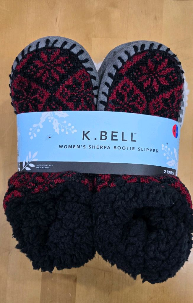 여성용 덧신 발목 보온 양말 2켤레 세트예요. 한 켤레는 그레이 바탕에 화이트 패턴, 다른 한 켤레는 블랙 바탕에 겨울 무늬 디자인으로 되어있어요. 새 제품 상태로 따뜻하고 편안한 실내화입니다.사이즈:M/L 240~255mm