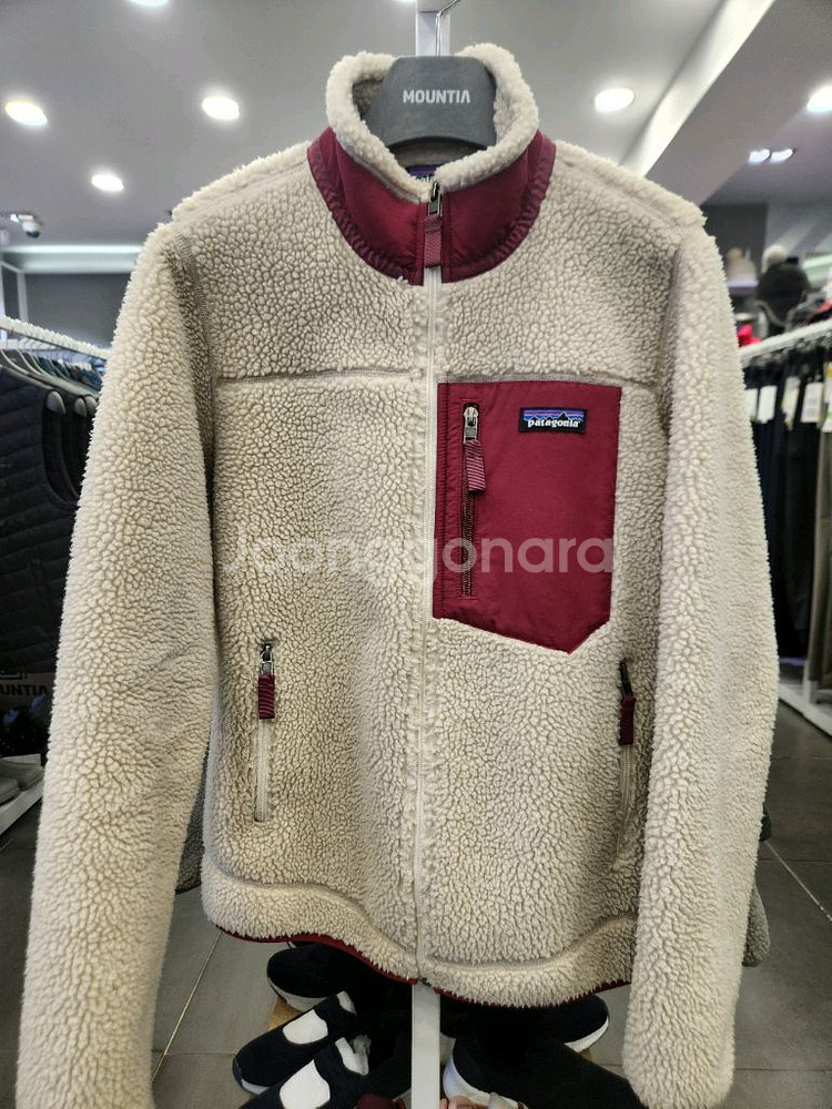 파타고니아 플리스 자켓이에요. 베이지와 버건디 컬러 조합이 예쁘고 따뜻한 플리스 소재로 겨울철 착용하기 좋아요. 상태 A급제품입니다.