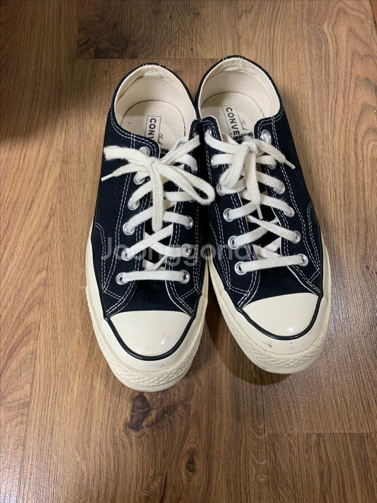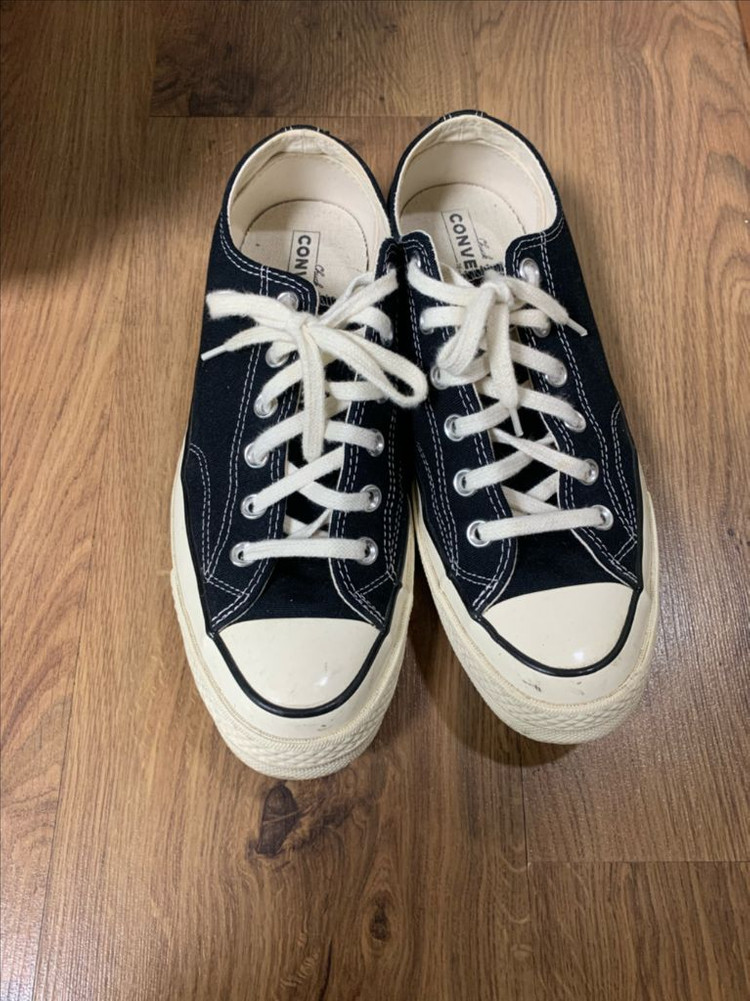 컨버스 블랙 260mm입니다 클래식한 디자인으로 어떤 스타일에도 잘 어울려요 캔버스 소재와 고무 밑창으로 편안한 착용감을 제공합니다 사용감이 적고 깨끗하게 신어서 상태 좋습니다