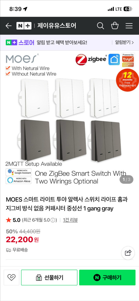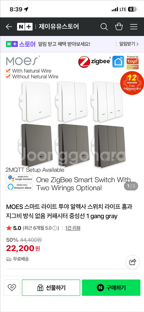 zigbee 방식 MOES 자동 스위치입니다. 간단한 설정을 통해 전등을 컨트롤 및 자동화 설정을 할 수 있습니다 뉴럴선 없는 버전입니다. 흰색 2구, 3구 각각 1개씩 있고 일괄 판매합니다. 2구는 설치하다가 지인이 다른거 선물해줘서 빼놨고요 3구는 완전 새거입니다.