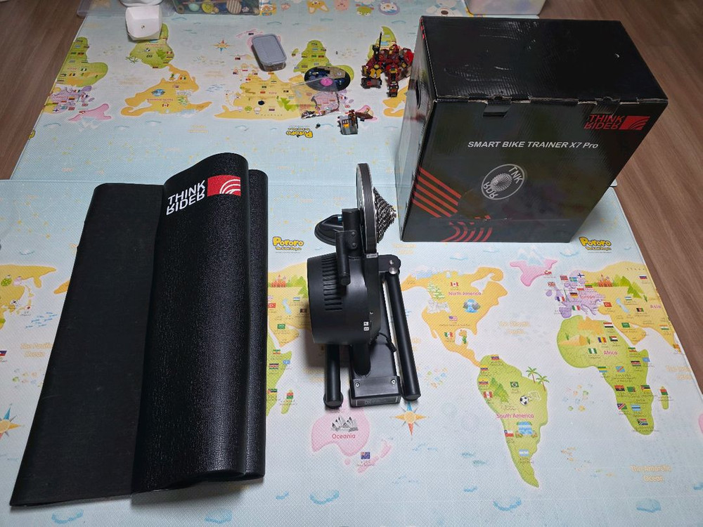 싱크라이더 x7pro 스마트 자전거 트레이너 팝니다. 박스 풀세트이고(내부 스티로펌은 없음), 먼지만 쌓이고 사용은 많지 않습니다. 12단 센샤(?)스프라켓 포함입니다.(시마노) 화성시청 인근 직거래