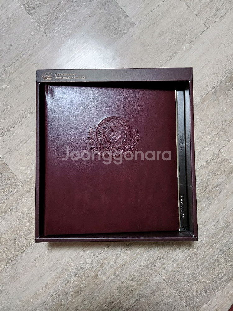 고급스러운 버건디 컬러의 사진앨범이에요. 내부는 깔끔한 화이트 바탕으로 되어있고 상태도 양호합니다. 특별한 날 찍은 사진들을 정리하기 좋을 것 같아요.