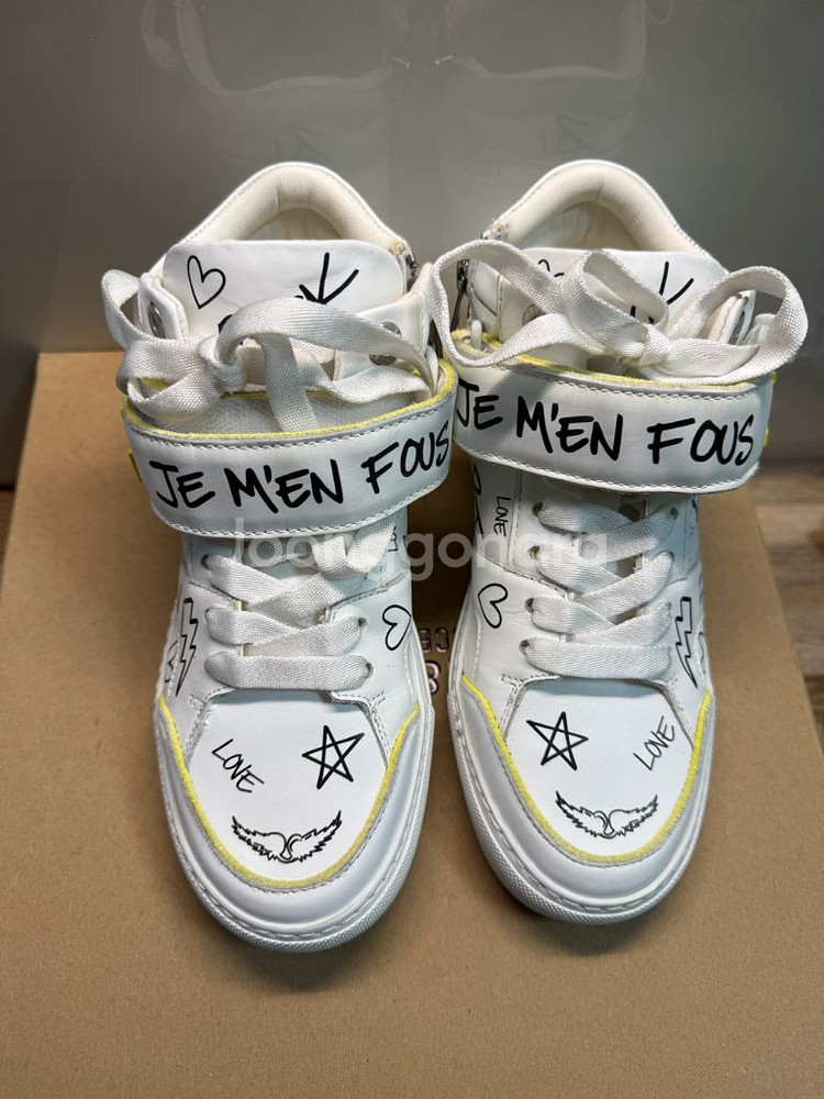 정품)쟈딕앤볼테르 Flash Fluorescent 스웨이드 스니커즈 36 쟈딕 시그니쳐 스닉커즈입니다 패턴만 바뀌어 시즌마다 출시되고 있는 슈즈예요. 국내판매가 50만원 넘습니다. 쉬크하고 예뻐요. 36사이즈는 품절이네요. 보관만 하여 사용감 없으나 지퍼근처 부분 가죽 상태 확인바랍니다 저렴히 올립니다