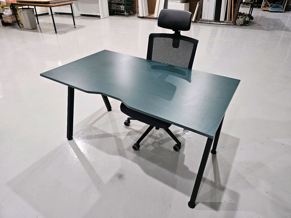 Simpiz 사무용 책상 책상 사이즈는 W1350 x D750 x H720 이고, 상판은 GG(S983), 다리는 SB 색상입니다 사무용으로 사용하기에 좋습니다 안전품질표시도 부착되어 있습니다 착불입니다 보유량 20개정도 개당가격입니다