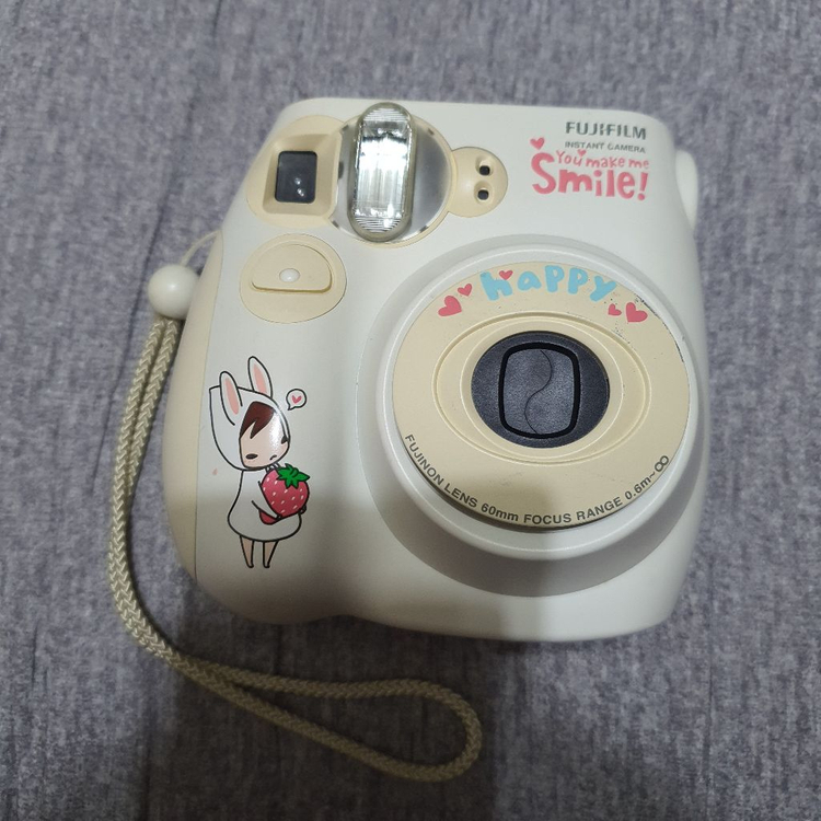 후지 인스탁스 미니7S 즉석카메라입니다. 카메라에 귀여운 스티커로 포인트를 줬습니다. 즉석 사진으로 소중한 추억을 간직하세요! 문의 없으시면 바로 안전결제해주시면 됩니다! 외관생활기스와 사용감이 있습니다 상태사진확인하세요 본체,스트랩 구성입니다 aa건전지 4개로 작동됩니다 건전지와 필름별매 예민분 비매너 거래 자제 바랍니다 중고거래후 반품 교환 환불 안받습니다 택배거래착불로 보내드립니다