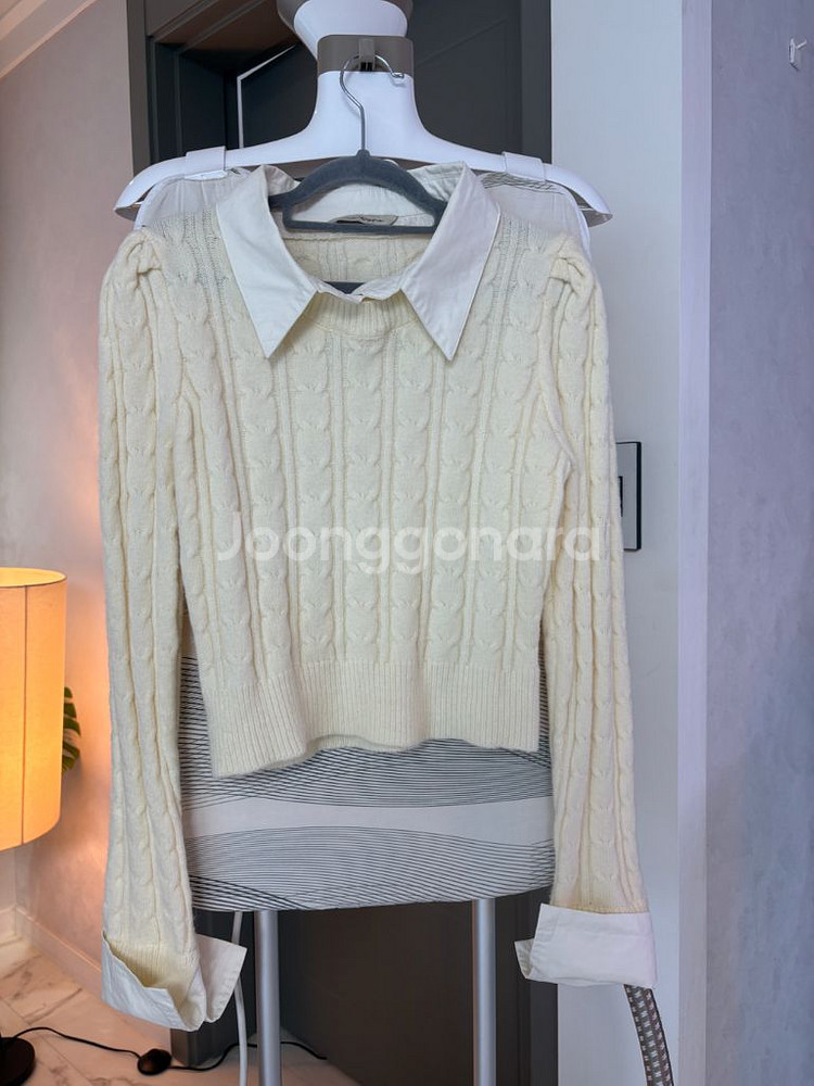 노란 케이블 짜임에 퍼프소매로 셔츠가 부착되어 있어 니트안에 따로 셔츠 입을 필요없이 단정하면서도 귀여운 느낌의 니트입니다. 크롭기장이어서 하이웨스트 하의랑 입었을 때 찰떡입니다. 보시다시피 상태 너무 좋아요. 총장 45 가반45