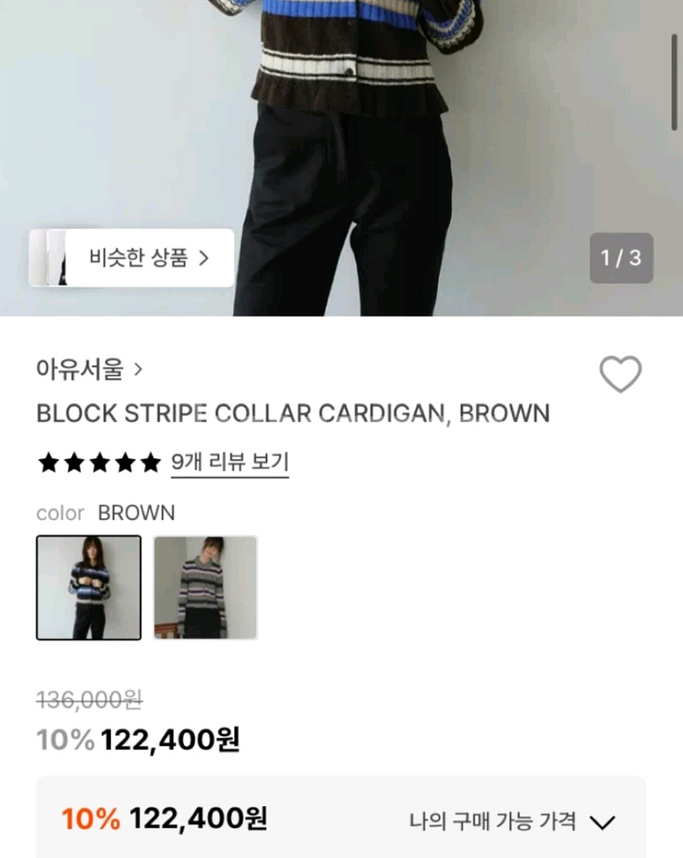 블록 스트라이프 셔링 가디건이에요. 브라운 베이스에 블루와 베이지 스트라이프 패턴이 예쁘고, 셔링 디테일이 포인트입니다. 시착만한 새상품입니다 택배거래만 가능합니다