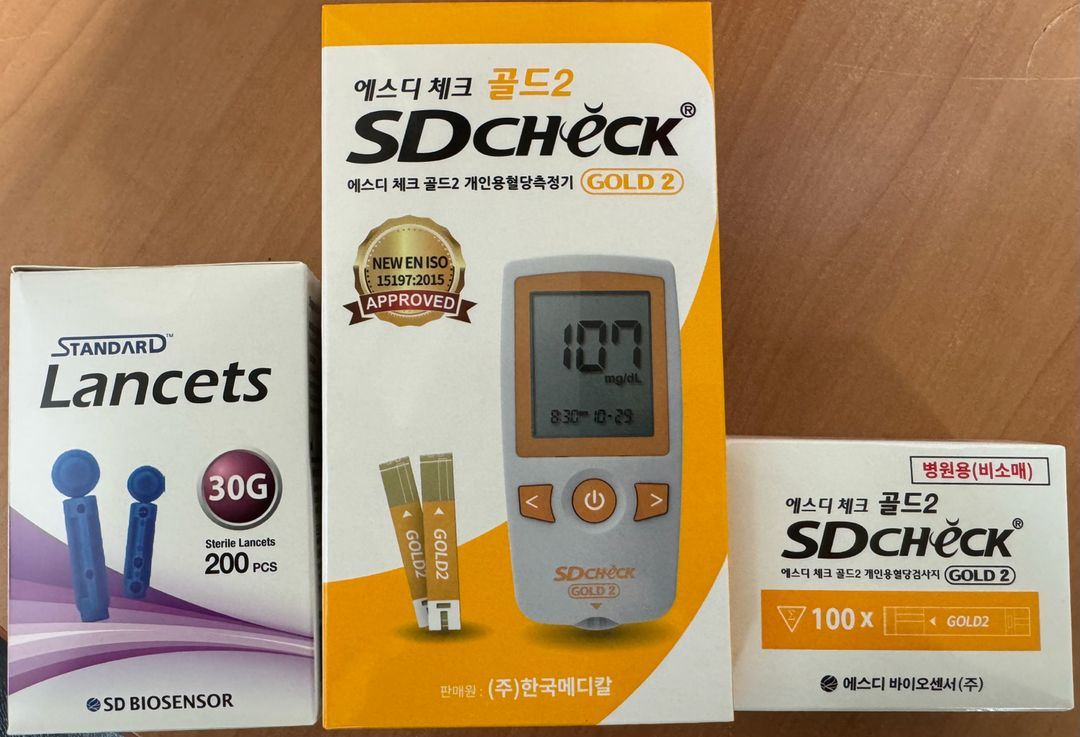 당뇨스틱 1곽(100s) 상시 재고 있으니 구매희망하시면 연락주세요~ 구성품 스틱 1곽, 란셋 1곽 측정기계 1곽 입니다.