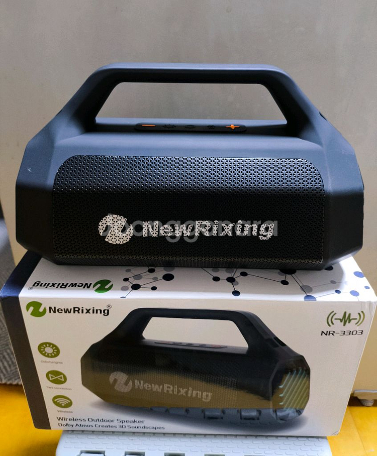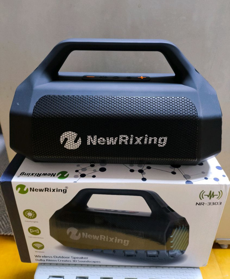 💜일단 편하게 문의 주세요. 💜물품 잘 검수해서 튼튼하게 포장 빠르게 택배 접수합니다. NewRixing 블루투스 스피커 박스 및 구성품 다 있는 새제품 50W 출력 / 2000mAh 배터리 C타입 충전 / FM 라디오 Rgb 조명 / TF카드 / aux 호환 📌올해 구입 음질 좋습니다.