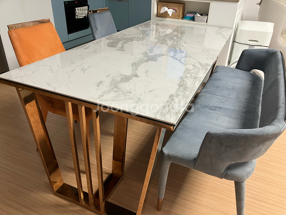 깔끔한 화이트 상판의 아일랜드 식탁과 의자 세트(6인용)예요. 모던한 디자인으로 주방 인테리어에 잘 어울리고, 전체적으로 깨끗한 상태입니다. 광교 갤러리아 백화점 쪽으로 오셔서 가져가시면 됩니다. 관심 있으신 분은 쪽지 주십시오~