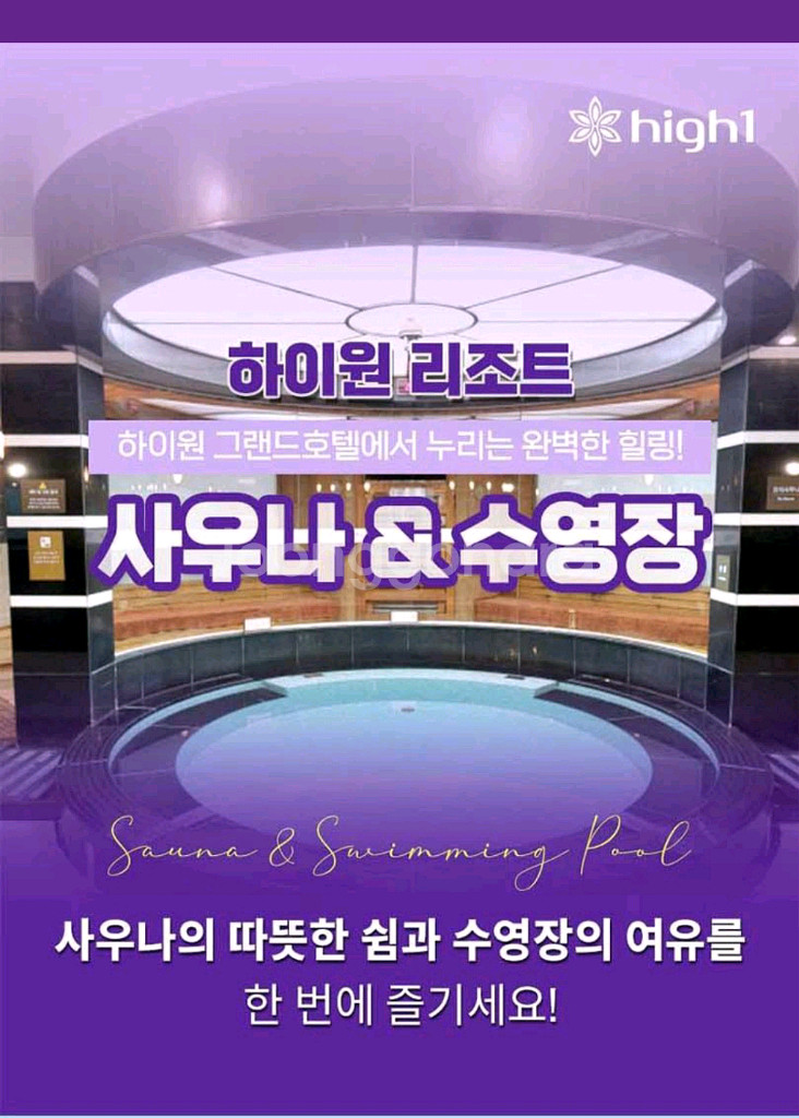 하이원리조트 그랜드호텔에서 사용할 수 있는 리조트 사우나와 수영장 이용권이에요. 대인용 3장있구요 장당 9천원입니다. 3/31까지 사용가능해요 구매시 바코드 전송해드립니당^^