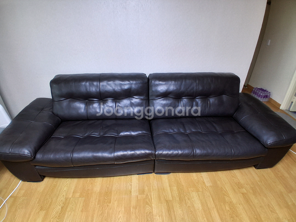 고급 천연가죽으로 제작된 4인용 소파예요. 전체적으로 깔끔한 상태이며 거실에서 사용하기 좋은 크기입니다. 편안한 착석감과 모던한 디자인이 매력적인 제품이에요.