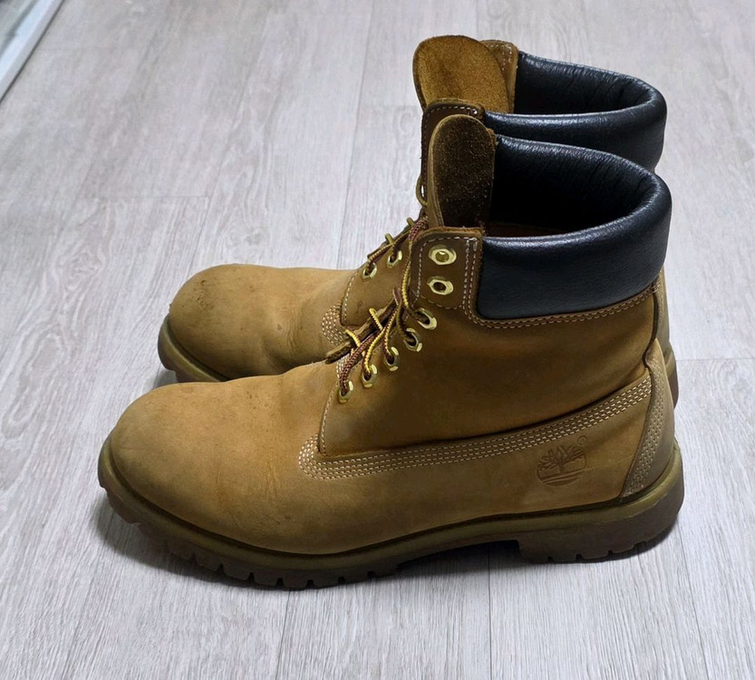 - 상품명 : 팀버랜드 6인치 워터프루프 프리미엄(10061) - 사이즈 : 9.5w(280)와이드 제품으로 표기사이즈 275인데 좀 크게 나왔네요. 280이상 체감입니다 - 상품상태 : (6.5/10) 겉 가죽에 사용감 있고 뒷굽이 닳아있습니다. - 문의사항 있으시면 채팅주세요! - 중고거래 특성 상 환불은 불가합니다.