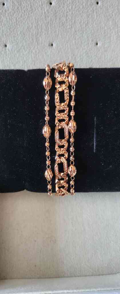 14k 로즈골드 팔찌로 러블리하고 이뻐요 17~17.5cm착용 중량 18그램 금이 아닐경우만 환불가능하세요