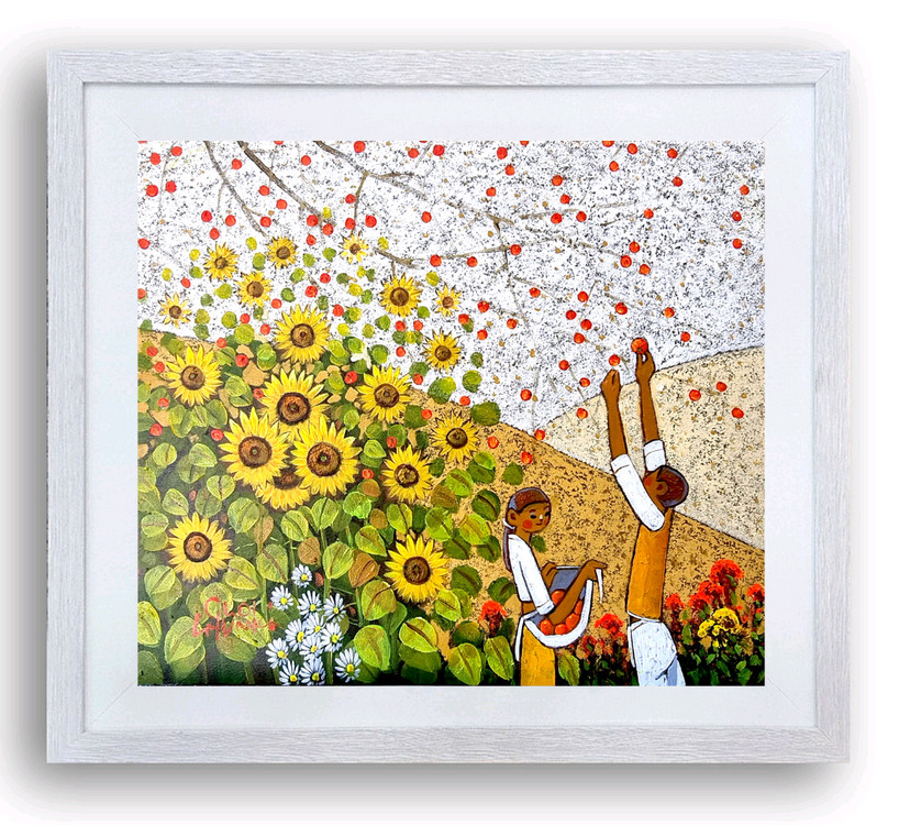안녕하세요 윤아트화실입니다 🍀 📍해바라기 &감나무 📍작가_ 최현기 📍액자포함크기 67cm x 60cm 📍캔버스 유화 해바라기 꽃은 황금과 명예를 불러오는 꽃입니다 풍수지리와 재물운 (가장 대표적인 의미) 금전운 상승: 노란색은 금(金)을 연상시켜 재물과 부를 불러온다고 믿어집니다. 행운의 소품: 가정이나 사무실에 걸어두면 긍정적인 에너지를 활성화하고 행운을 가져다준다는 믿음이 강합니다. 추천 위치: 현관(입구)에 걸어두면 재물운이 들어온다고 알려져 있습니다 ☎️ 구매원함 메세지 남겨주세요🙏