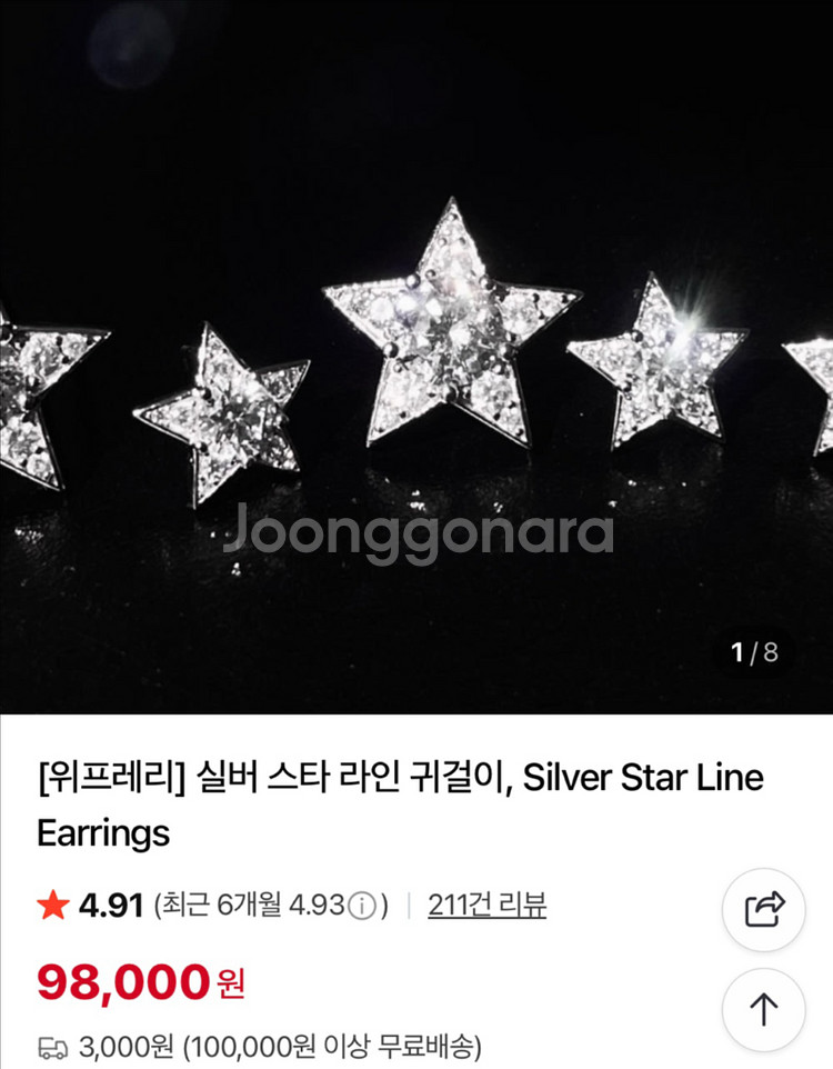 위프레리 베스트 셀러 실버 스타라인 귀걸이입니다 스몰 사이즈에요!! 실착 2회 깨끗히 소독후 보관중입니다~~ 은값 점점 오르고 있어요!! 이 디자인 좋아하시면 얼른 사시는게 좋을거 같네요 정가 98000원 -> 반값 택포 62000원 판매