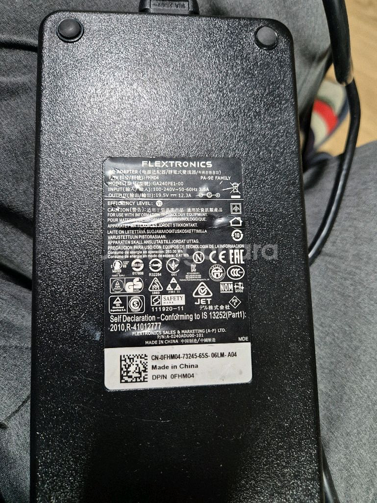 💻 Dell 게이밍 노트북 정품 240W 어댑터 판매합니다 ✔ 정품 OEM (Flextronics 제조 / Dell 납품) ✔ 출력: 19.5V / 12.3A (240W) ✔ 정상 작동 확인 완료 게이밍 노트북 / 고출력 노트북용으로 사용 가능합니다. 최근까지 정상 사용하던 제품이며, 여분 어댑터라 판매합니다. 📍 직거래 / 택배 가능 (협의) 필요하신 분 연락 주세요 🙂
