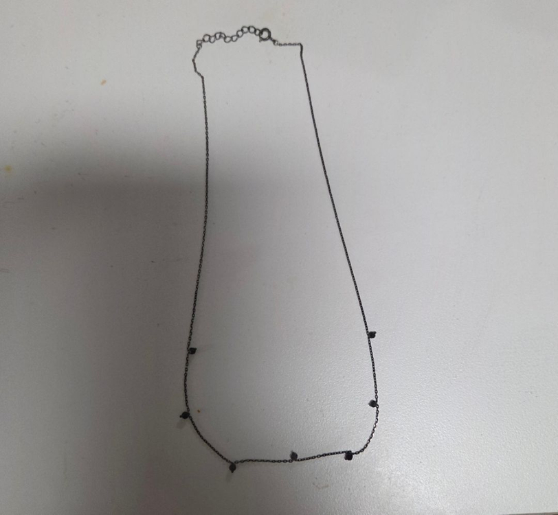 블랙 스피넬이 포인트로 들어간 목걸이입니다 전체 길이는 약 36cm 정도 됩니다 실버제품에 블랙을 입힌거 입니다. -은 판매하는 매장 구입. -반택 가능 -2개 구매시 3000원 할인
