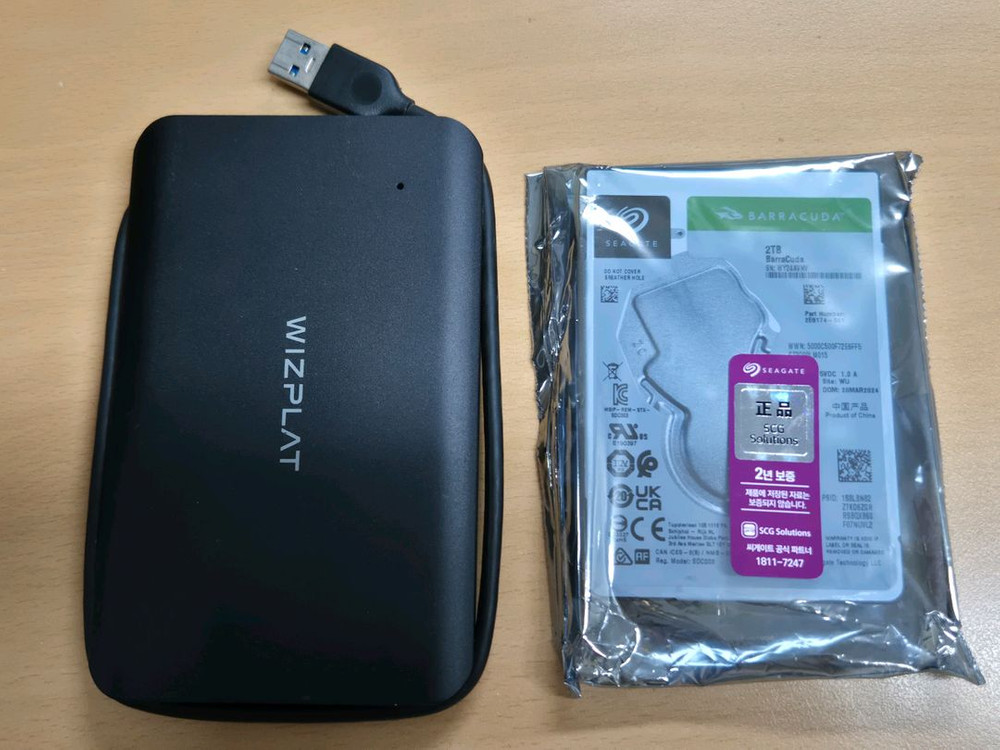 씨게이트 2.5인치 2테라 하드와 새로텍 외장 케이스. 하드는 신품, 케이스는 중고. 케이스는 케이블 일체형이라 아주 편합니다ㅎ 택배 가능합니다(무료)