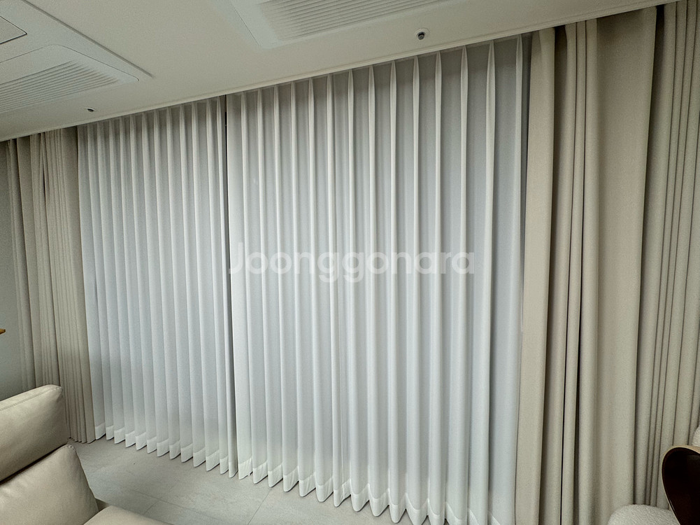 밀스커튼 전체 사이즈 460*250(42평 거실 맞춤) 겉커튼,속커튼 판매합니다 겉커튼은 라이트베이지, 암막률6-70%로 평주름 2폭이고 속커튼은 화이트쉬폰, 나비주름 2폭입니다 시공비 제외 48만원 주고 구입하였고 1년 사용하여 상태 매우 좋습니다 3/4일 날짜로 오후시간대에 편하실때 가져가시면 됩니다 겉커튼 속커튼 일괄판매합니다 대구 달서구로 가지러 오셔야 합니다