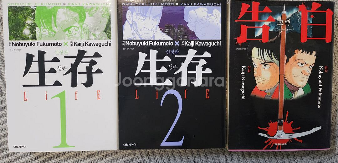 후쿠모토 노부유키 생존 Life 1~2권과 고백 총 3권 판매합니다. 신장판으로 소장 가치 있습니다. 상태는 사진과 같습니다.초판본입니다. 문의 없으시면 바로 안전결제해주시면 됩니다!