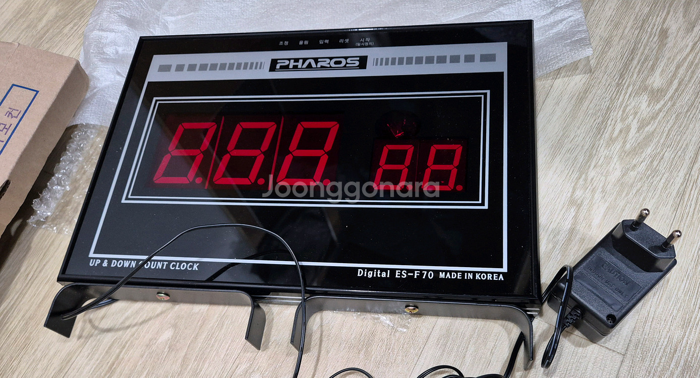 파로스 디지털 ES-F70 벽걸이 시계입니다 새제품으로 박스에 담겨있으며, 어댑터도 함께 포함되어 있습니다 11번가, 옥션 등에서 한대 13만원대에 판매되고 있는 제품입니다 업/다운 카운트 기능이 있어 스톱워치나 타이머로 활용하기 좋습니다 선명한 LED 디스플레이로 시간 확인이 용이합니다 두대일괄로 가져가시면 8만원 한대에만 리모컨이 있어 싸게 내놓아요ㅠ 천안직거래 택배거래 모두가능 거래내역다수 가까운곳 배달서비스