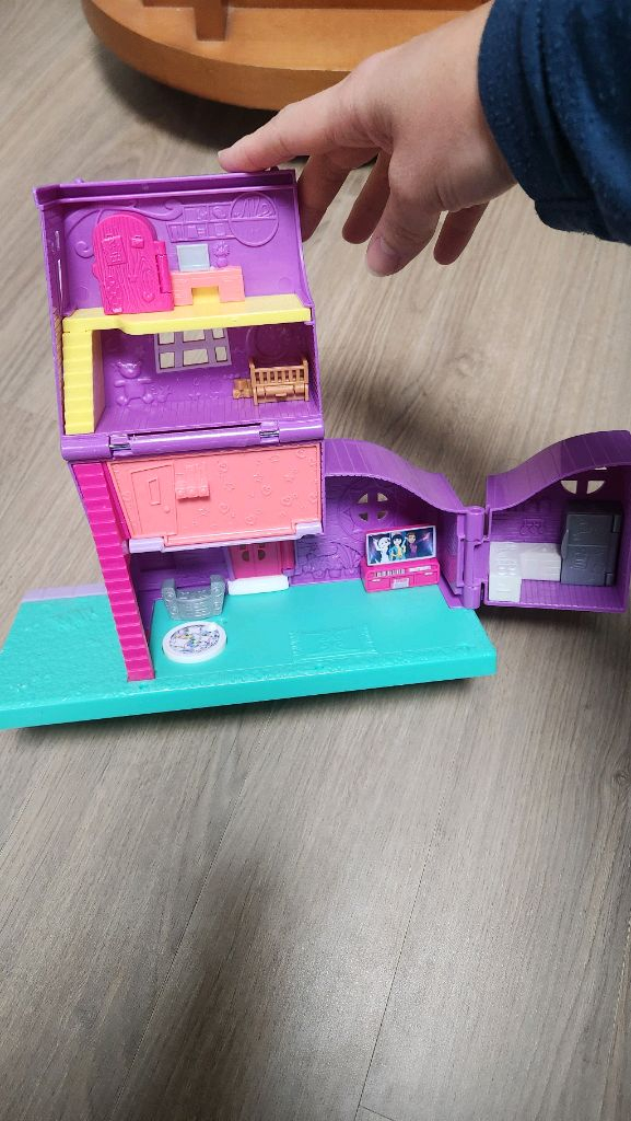 폴리포켓 폴리빌 4층집 미니어처 장난감입니다! 보라색 집 본체와 다양한 인형, 소품들이 함께 포함되어 있습니다. 인형놀이 좋아하는 친구에게 진짜 최고의 선물일 거예요. 옷도 갈아입힐 수 있고 집도 다양한 소품으로 꾸밀 수 있어요~ 저희 아이는 이런 아기자기한 걸 안 좋아해서 엄마 사심으로 사서 갖고 있다 결국 정리합니다ㅎㅎㅎ