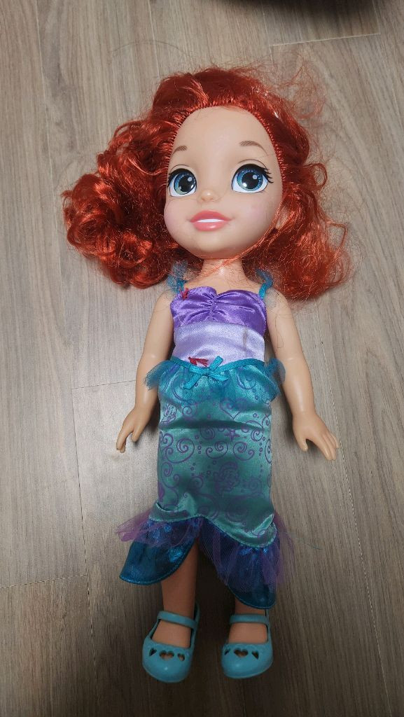 디즈니 프린세스 에리얼 인형입니다 아이가 고무줄로 머리를 묶어놔서 머리카락이 다소 헝클어져 있지만, 전체적으로 깨끗한 상태입니다 어릴 때만 갖고 놀다 오랜 시간 방치되어 있던 것 판매합니다.