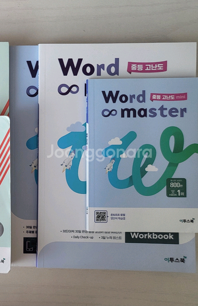 워드마스터 단어책 판매합니다 본책이랑 워크북 세트로 판매합니다 수능 2000➡️본책 뒤에 책갈피 뜯어져 있음(보관중)/ 워크북 1장 풀려있음/미니북 사용감 있음 하이퍼 2000➡️본책 새책/워크북X/미니북 사용감 있음 중등고난도➡️본책 뒤에 책갈피 뜯어져 있음(보관중)/워크북 새 책/미니북 새 책 수능&하이퍼 2000은 미니북 사용감이 꽤 있어서 따로 판매는 안하지만 원하시면 같이 드립니다🥰 • 수능 2000 - 판완 • 하이퍼 2000 - 판완 • 중등고난도 - 0.5 💕상점 내 다른 상품들과 합배송 가능합니다💕 편하게 연락주세요 :)