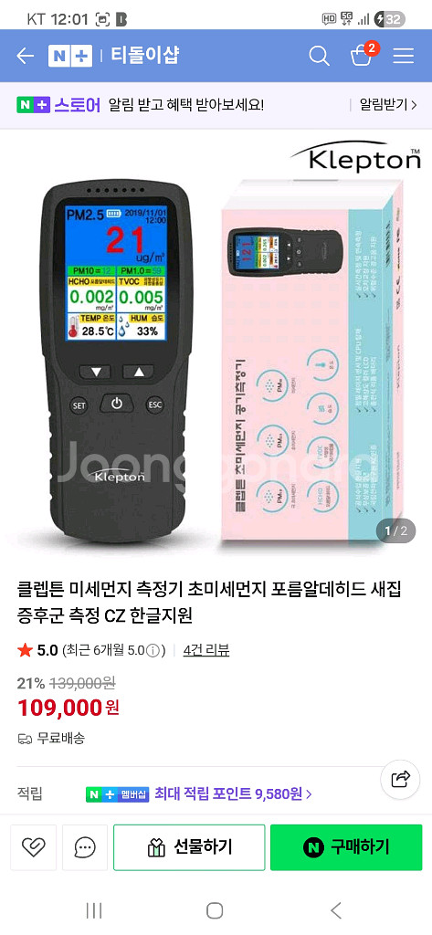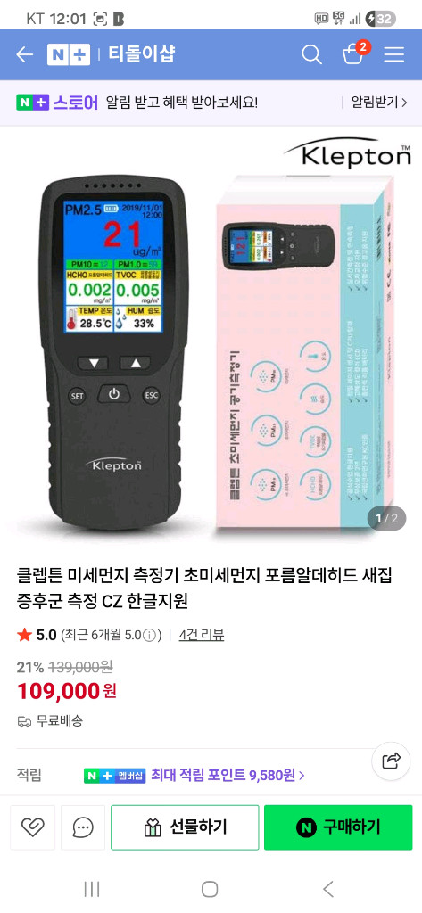 클랩튼 미세먼지 초미세먼지 공기측정기