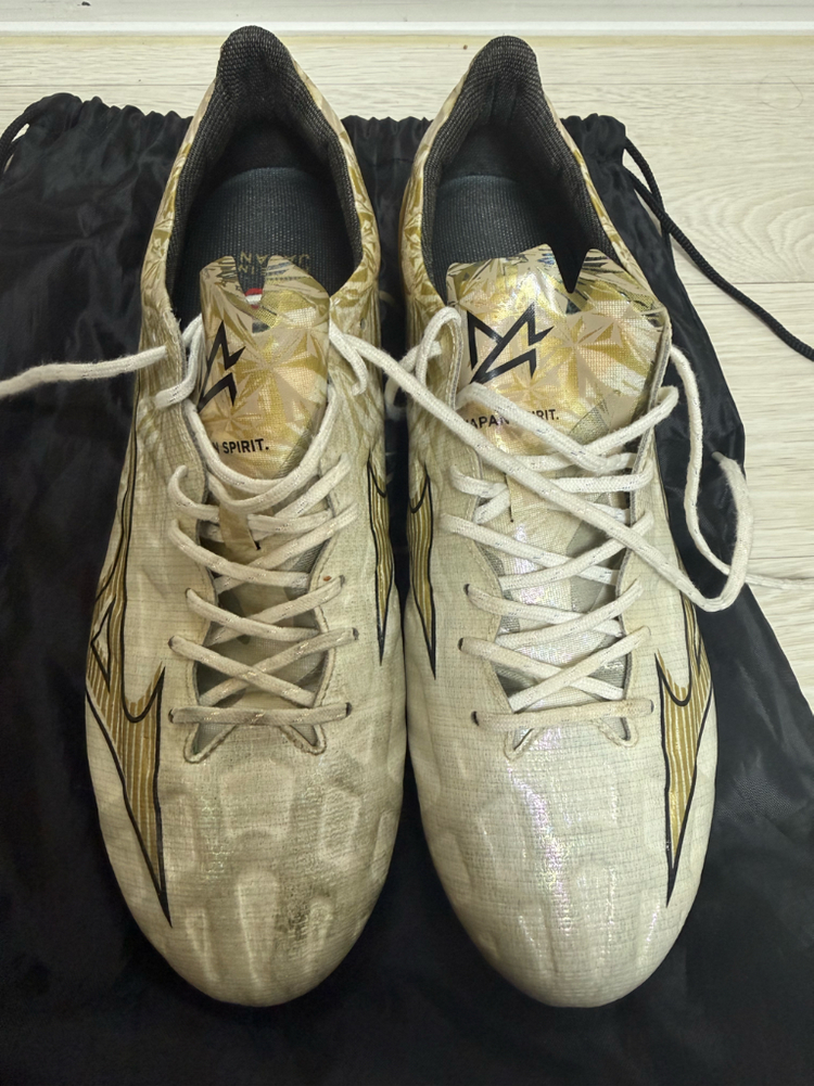 미즈노 최상위 등급 재팬입니다 시착 5회정도됩니다 스터드 하자 없고 한번 빨면 그냥 새거라고 보시면 됩니다 싸게 가져가세요 가격제시 해주세요 살때 30만원 정도 줬어요