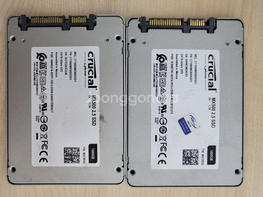 Crucial MX500 sdd 1TB 팝니다. 개당 10에 팝니다. 안쓴지 오래 된거 입니다. 용인 신갈동 직거래 가능 택배 거래 가능. 택배비 3천원 추가. 웬만하면 우체국으로 보내드려요. 안전 결제 XXXXX