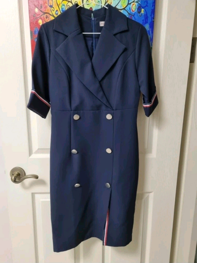 샤틴 브랜드의 네이비 색상 더블 버튼 원피스입니다. - 세련된 디자인으로 하객룩, 오피스룩으로 활용하기 좋습니다 - 편안한 착용감으로 데일리룩으로도 손색없습니다 - 다양한 액세서리와 매치하여 자신만의 스타일을 연출할 수 있습니다 - 더블 버튼 디테일이 고급스러움을 더합니다 - 격식 있는 자리에도 잘 어울립니다
