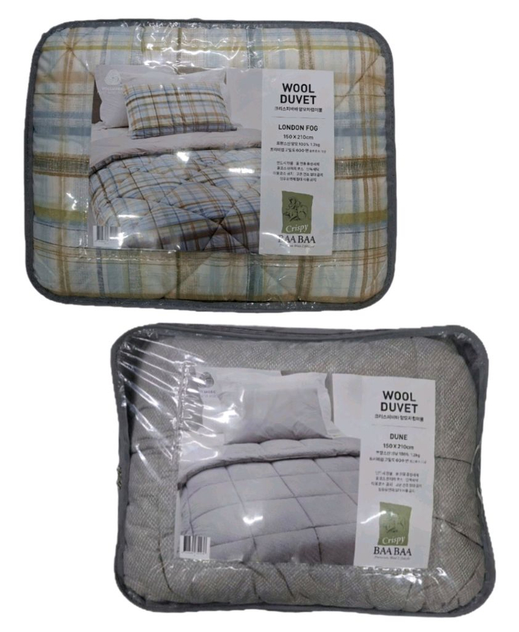 코스트코에서 판매하는 "크리스피바바 양모 차렵 이불 싱글(150×210, 1.2kg)"입니다. 제품 상세 사진과 스펙, 사진 참고 부탁드립니다. # 품명 크리스피바바 양모 차렵 이불 싱글(150×210, 1.2kg) # 제품 특징 -울프루프 가공된 프리미엄 60수 고밀도 순면 원단과 양털로 제작되었습니다. -차렵이불은 양털과 면을 같이 꿰매어 놓은 이불로, 언제든지간편하게 쓰기 좋은 이불입니다. -양털은 낮은 온도에 보온력이 좋고 동시에 통기성이 좋아 땀 흡수가 잘되어 쾌적합니다. -보온력과 통기성을 동시에 갖추어 추운 겨울 뿐만 아니라 사계절 사용 하기에도 좋습니다. -기계세탁이 가능하여 언제나 위생적으로 사용 가능합니다. -양모가 빠져나오지 않기 위한 울프루프 가공을 거친 60수 고밀도 평직 면 원단의 기분좋은 쾌적함과 100% 울의 완벽한 보온력을 사계절 경험하세요. # 제품 사양 -브랜드 : 크리스피바바 (CRISPY BAABAA) -색상 : 런던포그, 듄 -사이즈 : 가로 150 x 세로 210cm -소재 : 겉감 - 프리미엄 면 100% (60수 고밀도 평직, 울프루프 가공) 충전재 - 프랑스산 프리미엄 양모 100% -구성 : 이불 1 택배 가능 남양주 별내 직거래 가능