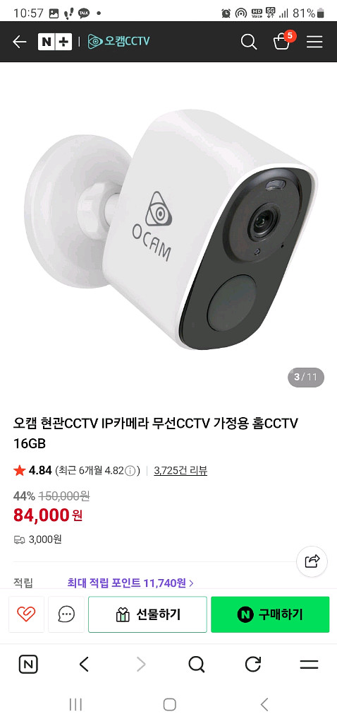 홈 보안용으로 사용하기 좋은 IP카메라예요. 무선 연결로 설치가 간편하고 16GB 용량으로 넉넉하게 촬영 가능합니다. 박스채그대로 이사용.직거래로 현금거래 부탁드립니다.